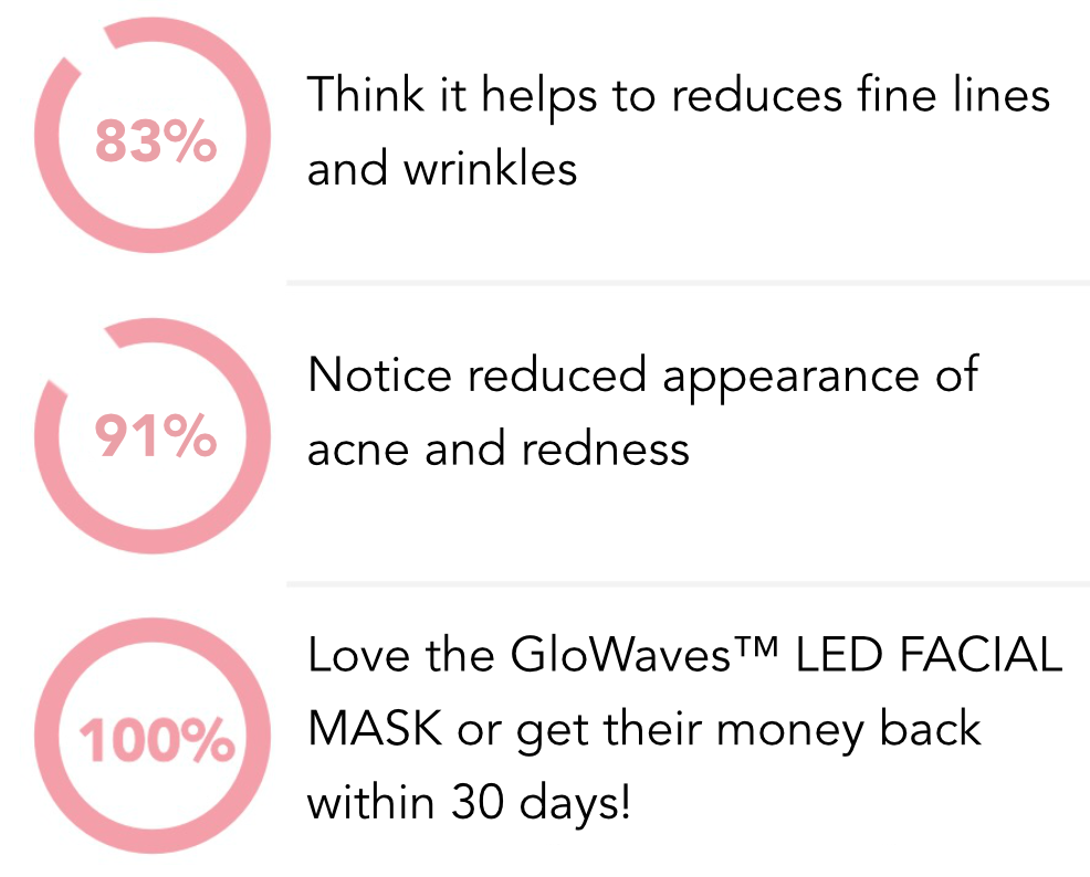 We are CERTAIN you will see improvements with your skin, so we back Glowaves™ LED Facial Mask with a 30 Day Money Back Guarantee.