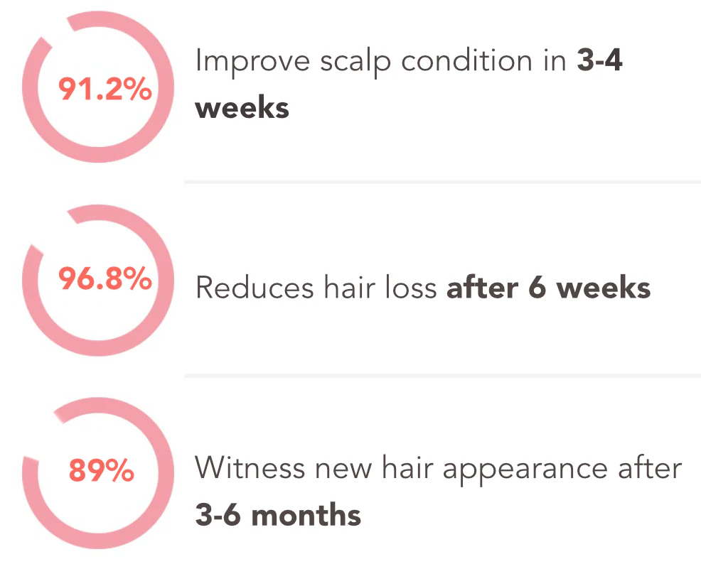 Effective for stimulating hair growth, increasing density, improving scalp health, and reducing hair loss in a safe, non-invasive way.